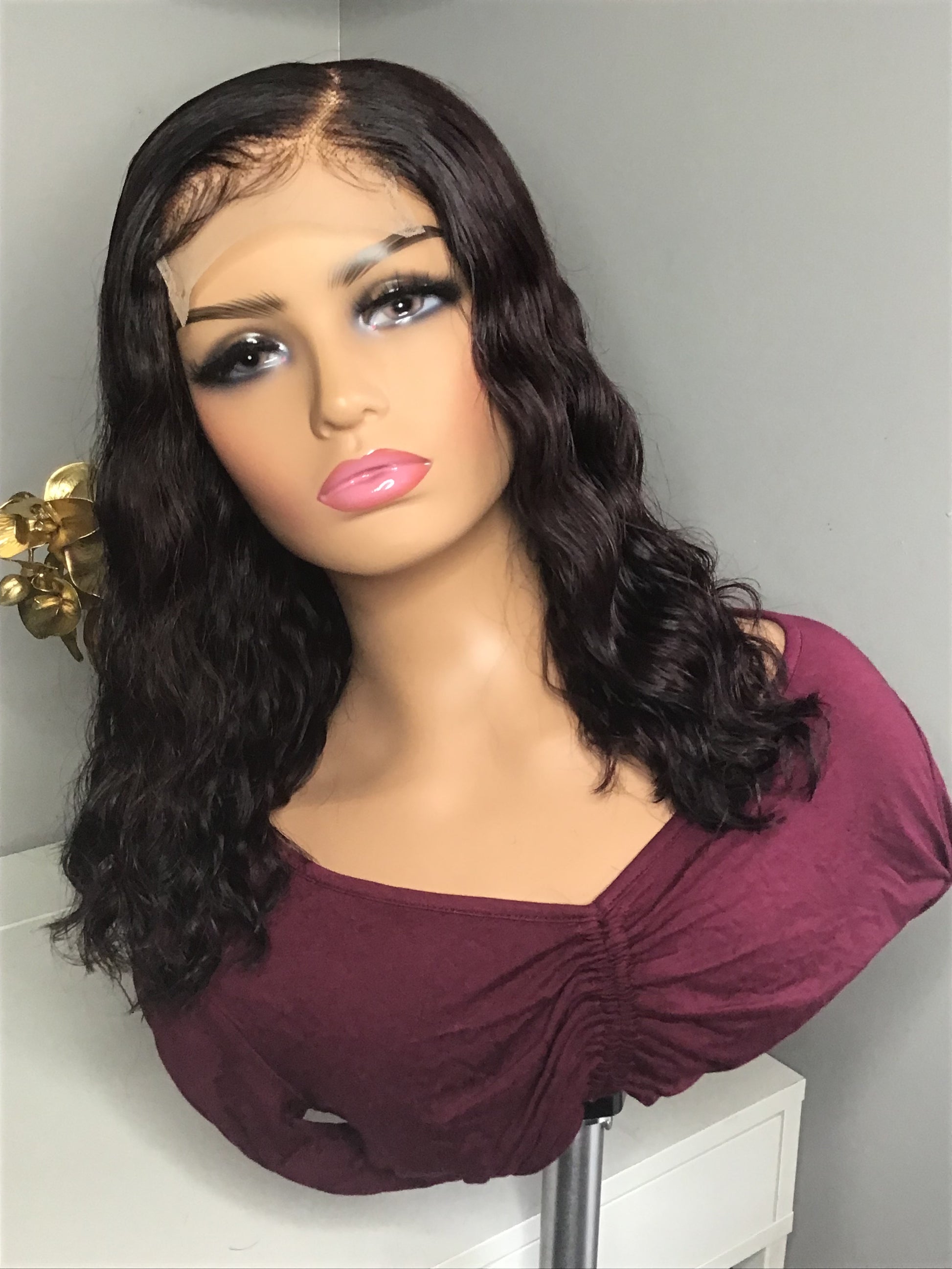 custom color red wine elastic band, bleached knots, plucked 100% glueless