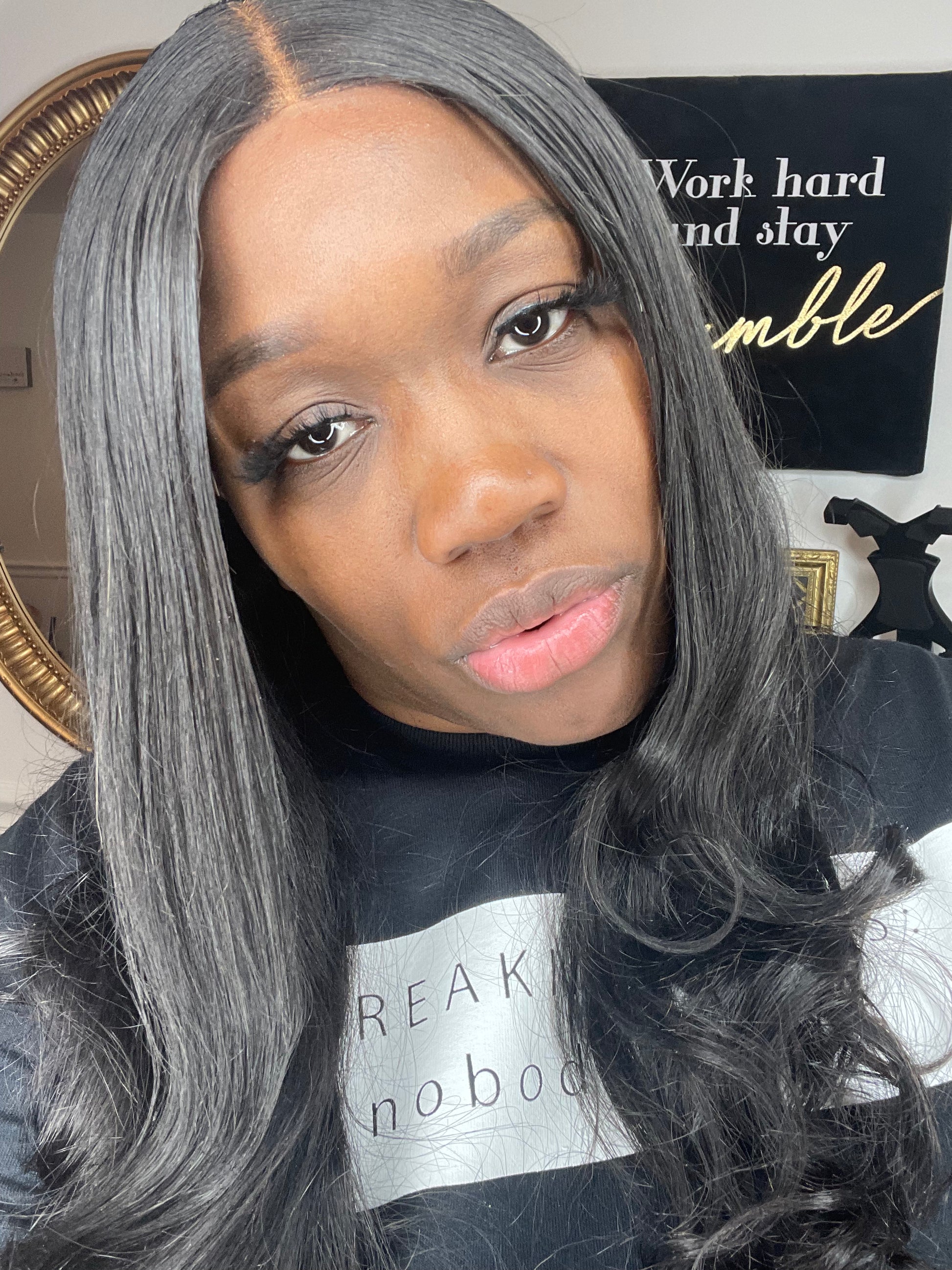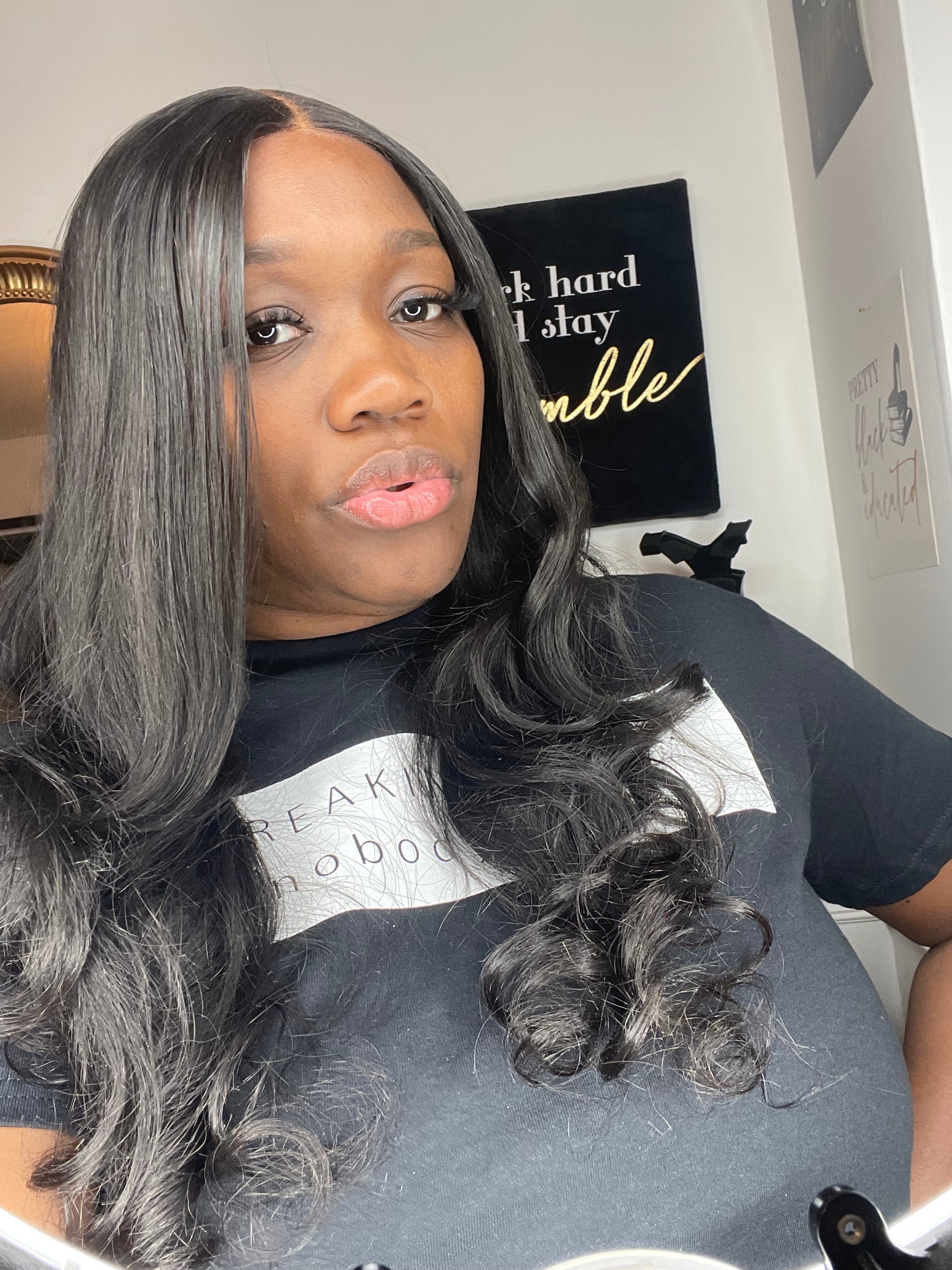 26 “ Custom machine closure wefted unit. Elastic band, pre plucked, bleached knots, standard size stretch cap